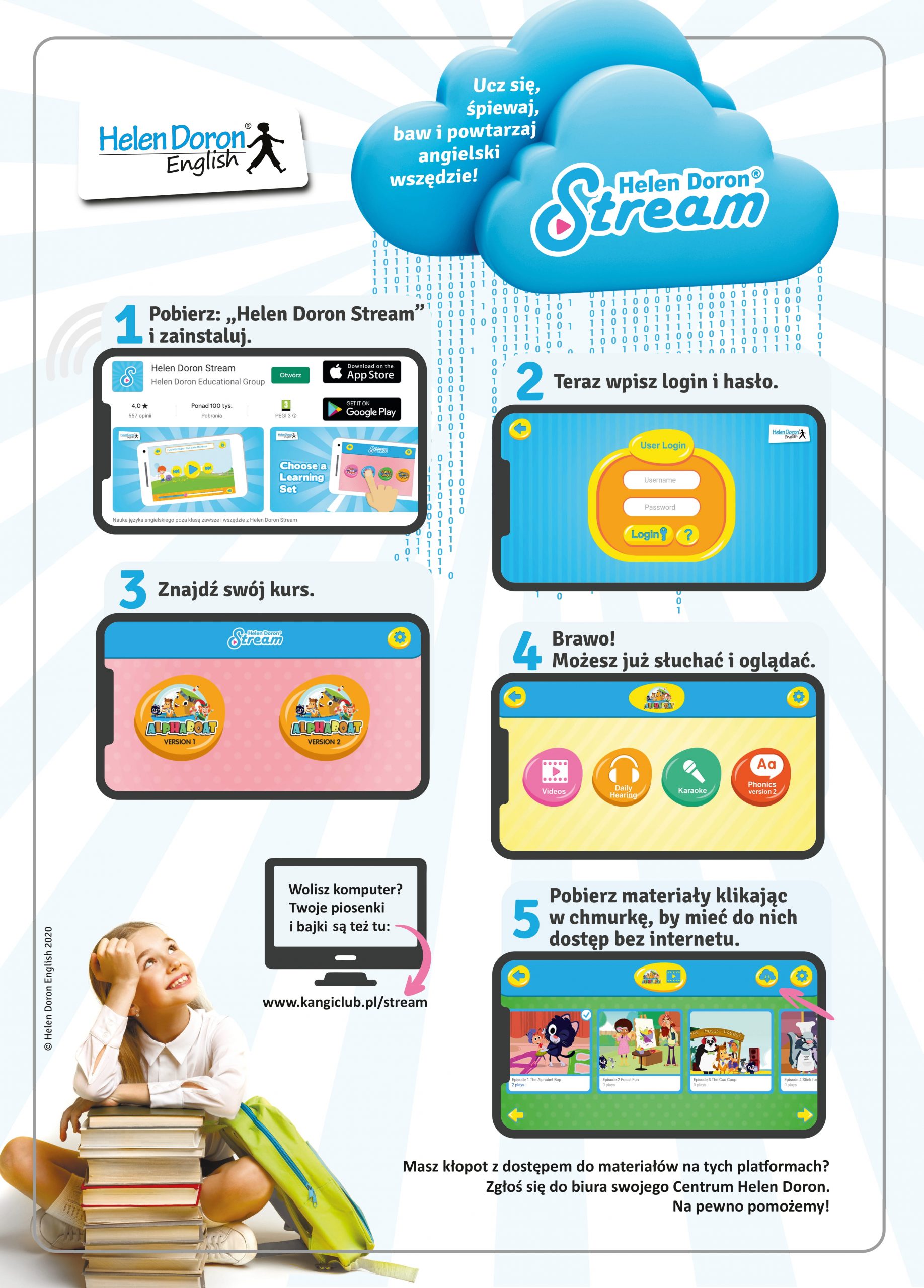 Słuchasz systematycznie nagrań ze swojego kursu Helen Doron? Przynieś wypełnioną tabelkę do naszej szkoły i wymień ją na mini pakiet nagród. Przypominamy, że dziecko, które systematycznie słucha HELEN DORON STREAM: częściej, więcej i chętniej mówi po angielsku, robi to spontanicznie, używa całych wyrażeń, jest bardziej zmotywowane i chętniej bierze udział w zajęciach gdyż zna przerabiany […]