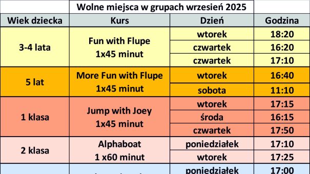 01.10.2025 Ostatnie miejsca w grupach!