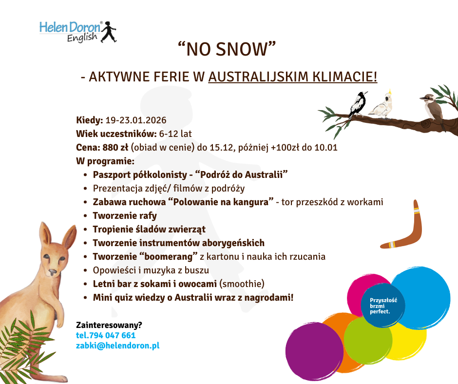 „No Snow” – aktywne ferie w australijskim klimacie w Helen Doron Ząbki!!!!!